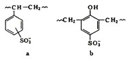 ①陽離子交換樹脂的交換反應(yīng):R--H++Na+Cl-↔R--Na++H+Cl-R為高分子強(qiáng)酸基,如結(jié)構(gòu)式a、b。