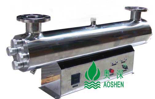 由金屬腔體、帶石英套管的紫外燈、系統控制柜、紫外線強度檢測儀、手動/全自動清洗系統組成。 腔體用不銹鋼制造,內壁作拋光處理以提高對紫外線的反射能力和增強輻射強度。設備選型時根據水量的大小和進水水質指標確定紫外燈管的數量,在紫外消毒腔里還增加專用設備以改變水流的狀態保證腔體中水流所照射的紫外線劑量均勻,提高消毒效果。 電控系統:啟動和監控紫外燈運行。可根據客戶需要配置各種先進的在線監控儀表和遠程控制系統。 清洗裝置:可根據客戶需要配置機械式手動或自動清洗紫外C燈管裝置。 設備安裝:基座固定,直接串連于進、出水管道之間,采用法蘭盤或螺紋連接。 進出水管口徑和方向可根據用戶要求生產。