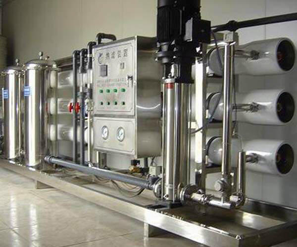 1、原水罐 (可選) 儲存原水,用于沉淀水中的大泥沙顆粒及其它可沉淀物質(zhì)。同時緩沖原水管中水壓不穩(wěn)定對水處理系統(tǒng)造成的沖擊。(如水壓過低或過高引起的壓力傳感的反應(yīng))。 2、原水泵 恒定系統(tǒng)供水壓力,穩(wěn)定供水量,確保原水經(jīng)過前面砂濾、炭濾、軟化罐后還有足夠的水量和水壓,供給高壓泵工作。 3、石英砂過濾器 采用多次過濾層的過濾器,主要目的是去除原水中含有的泥沙、鐵銹、膠體物質(zhì)、懸浮物等顆粒在20um以上的物質(zhì),可選用手動閥門控制或者全自動控制器進行反沖洗、正沖洗等一系列操作。保證設(shè)備的產(chǎn)水質(zhì)量,延長設(shè)備的使用壽命。 4、活性炭過濾器 系統(tǒng)采用果殼或椰殼活性炭過濾器,活性炭不但可吸附電解質(zhì)離子,還可進行離子交換吸附。經(jīng)活性炭吸附還可使高錳酸鉀耗氧量(COD)由15mg/L(O2)降至2~7mg/L(O2),此外,由于吸附作用使表面被吸附復(fù)制的濃度增加,因而還起到催化作用、去除水中的色素、異味、大量生化有機物、降低水的余氯值及農(nóng)藥污染物和除去水中的三鹵化物(THM)以及其它的污染物。可選用手動閥門控制或者全自動控制器進行反沖洗、正沖洗等一系列操作。保證設(shè)備的產(chǎn)水質(zhì)量,延長設(shè)備的使用壽命。同時,設(shè)備具有自我維護系統(tǒng),運行費用很低。 5、離子軟化系統(tǒng)/加藥系統(tǒng) (可選) 為防止?jié)馑颂貏e是納濾裝置最后一根膜組件濃水側(cè)出現(xiàn)CaCO3,MgCO3,MgSO4,CaSO4,BaSO4, SrSO4, SiSO4的濃度積大于其平衡溶解度常數(shù)而結(jié)晶析出,損壞膜原件的應(yīng)有特性 ,在進入膜組件之前,應(yīng)使用離子軟化裝置或投放適量的阻垢劑阻止碳酸鹽, SiO2,硫酸鹽的晶體析出。 6、精密(保安)過濾器 采用精密過濾器對進水中殘留的懸浮物、非曲直粒物及膠體等物質(zhì)去除,使納濾系統(tǒng)等后續(xù)設(shè)備運行更安全、更可靠。濾芯為5um熔噴濾芯、目的防止上級過濾單元,漏掉的大于5um的雜質(zhì)除去。防止進入反滲透裝置損壞膜的表面,從而損壞膜的脫鹽性能。
