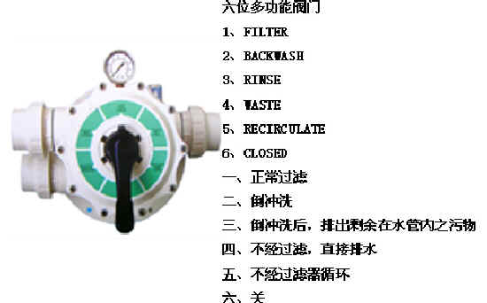 璃纖維過濾砂缸相配套的六位多功能閥門